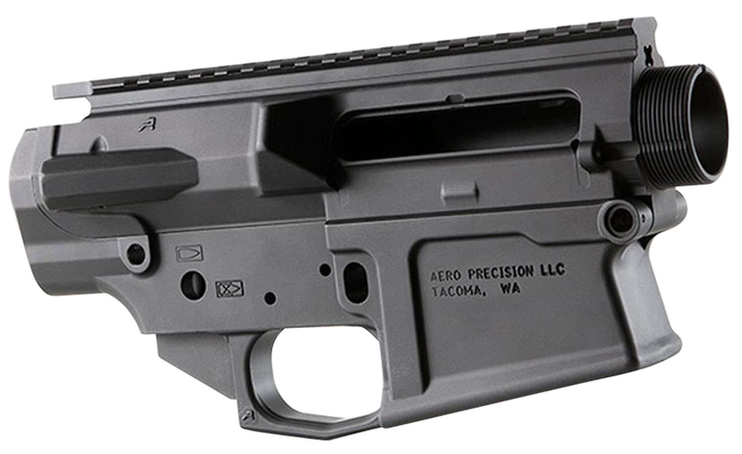 Aero Precision's M5 Stripped Receiver set is engineered to match flawlessly, providing the operator superior performance and accuracy in a durable and dependable platform. The upper receiver features M4 feedramps, .2795" takedown pin holes (DPMS size), AR 308 High Profile (.210) Tang, laser-engraved T-marks. The lower receiver features a rear takedown pin detent hole threaded for a 4-40 set screw, bolt catch that is threaded for a screw pin (no roll pin needed), an integrated trigger guard, and is marked "Cal Multi". It works with standard DPMS 308 components and magazines, and accepts Battle Arms Development short throw safety selectors, but will work with any standard selector. The markings will work with 45, 60, or 90 degree safety selectors. There is no gap with aftermarket pistol grips. Both the upper and lower receiver are machined from 7075-T6 forged aluminum.
