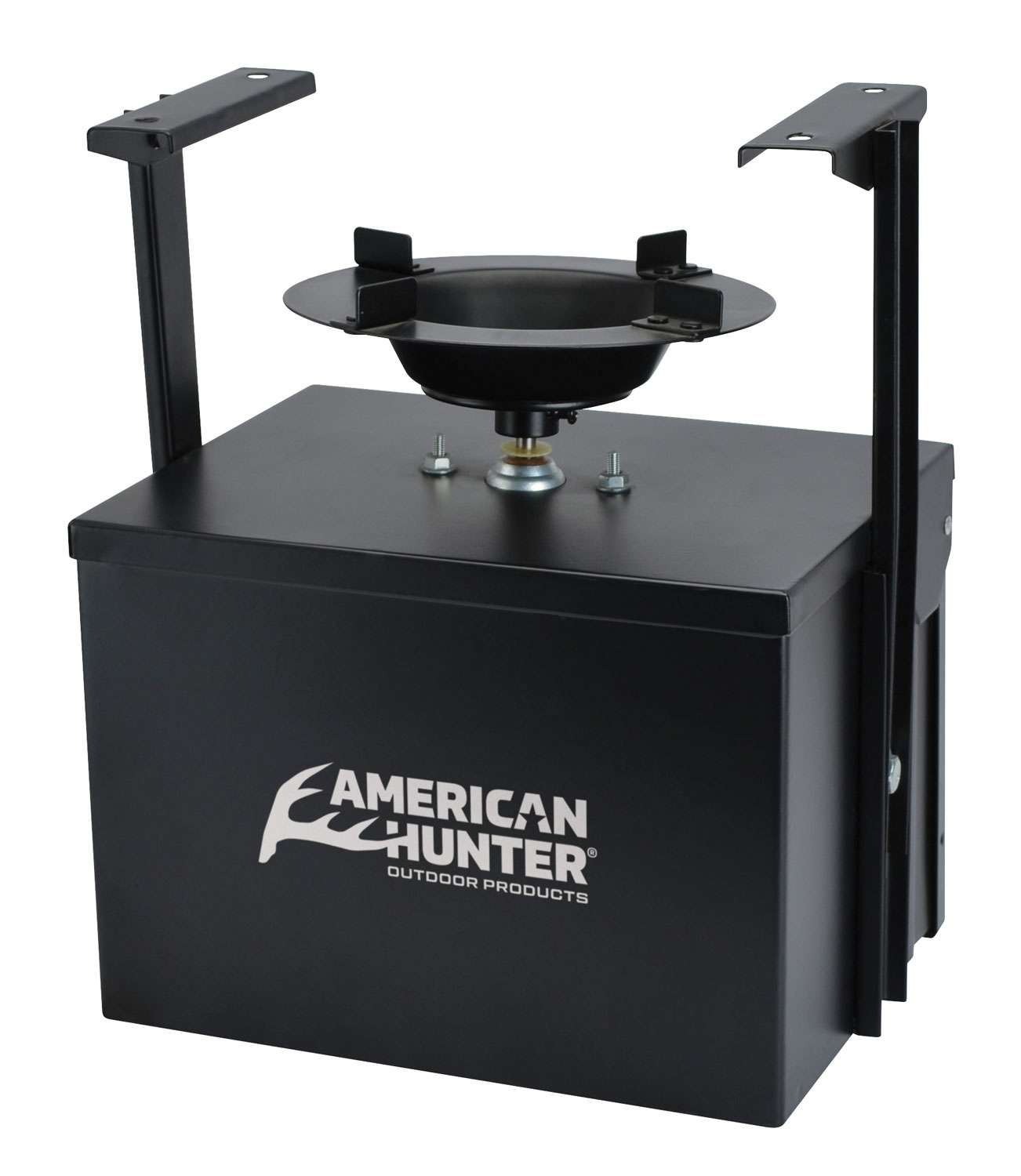 The Spin Kit from American Hunter has a heavy-duty metal control housing with high torque industrial motor, "no blow" slinger which resists wind and grain trickle, and a metal downspout. It is easy to install and runs on 6 or 12 volt batteries. The digital timer features memory preservation up to 30 min after the power is out. It feeds 1-8 different times per day at a 1-30 second feed rate.