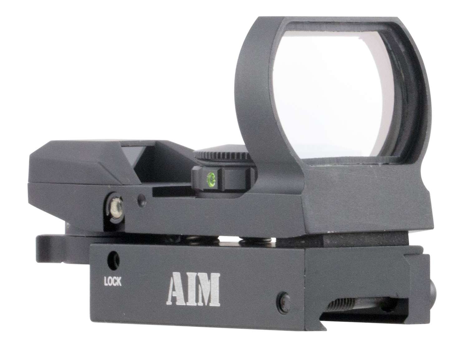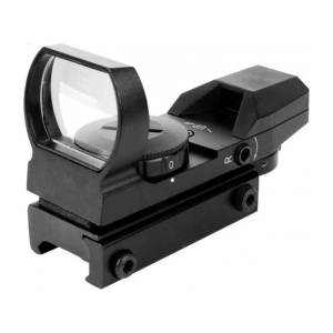This Reflex Warfare Edition is a lightweight, compact reflex sight with a wide field of view. With four reticle patterns (arrow dot/predator/smiley face/skull) and red/green illumination, this reflex sight has ultra-fast target acquisition and unlimited eye relief. It has an aircraft grade aluminum body and fog proof and shock-resistant housing. The coated lens provides superior light transmission, resolution and scratch resistance. It has an integrated Picatinny/Weaver mount and includes a protective lens cover.
