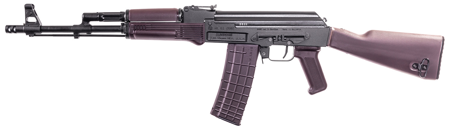 The SAM5-67PM is a Bulgarian made, forged and milled receiver, modern sporting rifle in a 5.56x45mm caliber. It has a chrome lined hammer forged barrel with a 14x1mm left-hand threaded removeable muzzle brake. The furniture consists of reinforced Plum polymer stock set with a stainless-steel heat shield inside the lower hand guard for more effective heat dissipation and a fixed intermediate length buttstock with a trap door for the cleaning kit. There is a bayonet lug and an accessory lug for bayonet and accessories attachment.