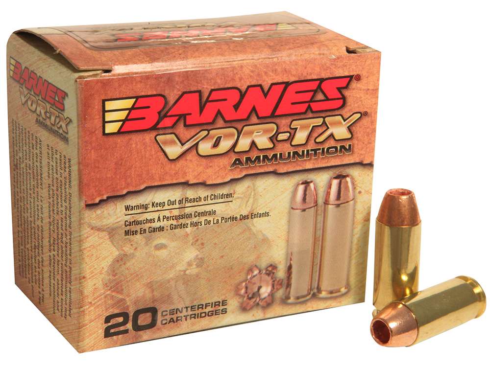 Barnes VOR-TX Handgun hunting ammunition loaded with the XPB bullets offers double-diameter expansion, maximum weight retention and excellent accuracy. The XPB bullets provide maximum tissue and bone destruction, pass-through penetration and devastating energy transfer. Bullets open instantly on contact - no other bullet expands as quickly. Nose peels back into six sharp-edged copper petals destroying tissue, bone and vital organs for a quick, humane kill.