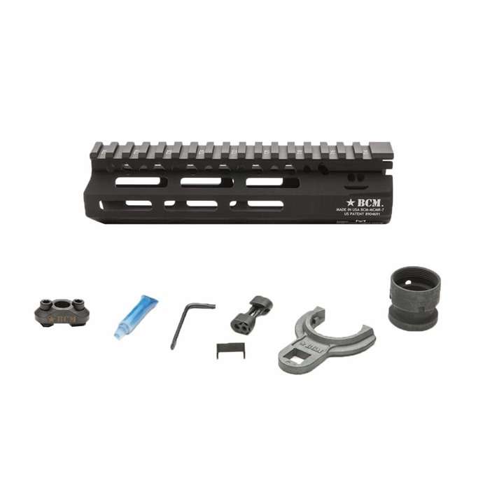The BCM MCMR is a free float handguard that eliminates loads from the barrel, reducing the deflection for more accurate shooting. The MCMR features a M-Lok compatible mounting system, a steel barrel nut to resist movement under heat, and has a black hard coat anodized finish. This handguard is 7".