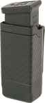 BlackHawk's Single Double stack carbon fiber mag pouch has a built in tension spring, to hold your magazine in place until you need it and to allow the use of a variety of magazines in each pouch. This single stack magazine pouch works with all caliber single column mags, from 9mm to .40 caliber.