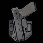 The Bravo Concealment Adaptive (BCA) OWB concealed carry holster is designed to be the best outside the waistband option for everyday concealed carry. Their outside the waistband (OWB) holster fits your gun perfectly. This is because they design their molds in-house with the latest CAD design. They 3-D scan the actual gun and build a solid off the cloud for the most precise fit within three-thousandths of an inch. Whether you open carry or conceal carry” the BCA OWB holster rides high and close to the body for maximum concealment while perfectly fitting your gun. They also have a slight curve to help wrap around the natural curvature of your waistline. Bravo holsters have a very smooth pocket for a quick and pronounced” audible “click” when reholstering. Since the holsters are made specifically for your gun” it keeps it locked and tight with no movement when wearing your gun. This keeps the finish of your gun in very good condition.