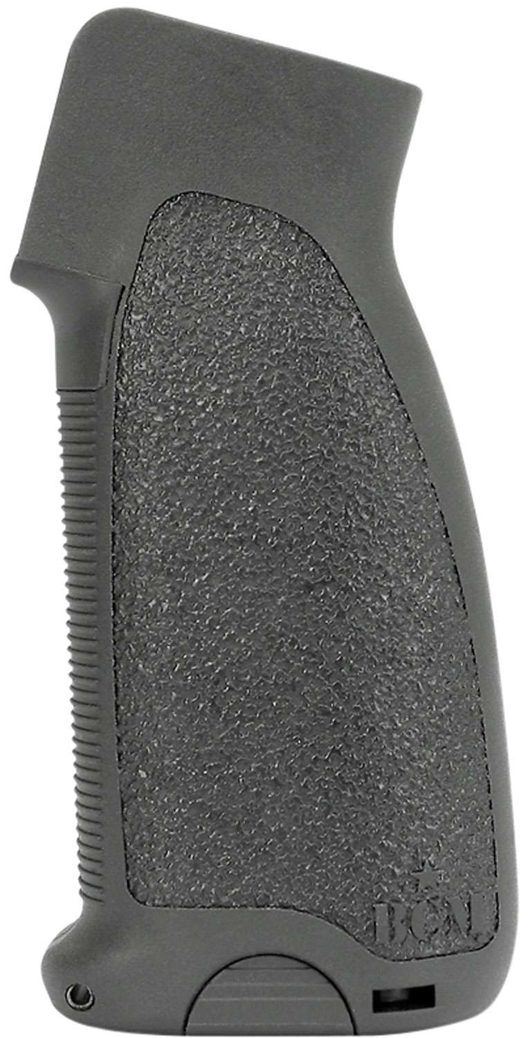 This pistol grip features a hinged trap door which offers storage inside the grip with a water resistant rubber gasket. The grip includes both an extended modular insert to close the gap between the trigger guard and pistol grip, and a smooth modular insert for use with some rifles with larger built in trigger guards.
