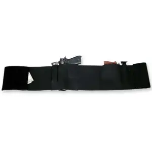 The Bulldog deluxe belly wrap holster is the ideal deep conceal carry option for law enforcement or civilians. This deluxe wrap is designed to fit snugly against your body while provided you access to up to two firearms, and 2 magazines. The belly wrap also provides you the ability to hide money in a concealed money pocket. This particular belly wrap holster features a 6" wide elastic band and uses Velcro for securing.