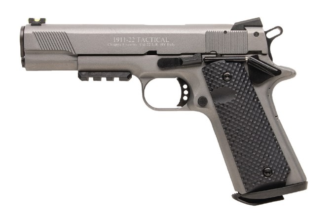 Chiappa Firearms 1911-22 Tac, Semi-automatic, Metal Frame Pistol, Full Size, 22LR, 5" Barrel, Matte Finish, Gray, Plastic Grips, Adjustable Fiber Optic Sights, 10 Rounds, 2 Magazines 401.143