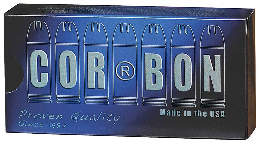 Cor-Bon's tried and tested Jacketed Hollowpoint ammunition provides reliable penetration and expansion. This is achieved through high velocity and using exclusively designed components. The faster a bullet is traveling, the more energy is created. Energy developed at the muzzle must be transferred or "dumped" into the target to be effective. Energy transfer is aided by bullet expansion. The higher the velocity, the more rapidly the expansion, the more effectively the energy is expended into the target. This explosive expansion dumps the available energy quickly, creating tremendous shocking power, and causes immediate Stopping Power! Stopping Power means Safety! Don't be misguided by those who claim that their products have some magical or mystical performance advantage or that they can make a reduced power load with increased performance. Cor-Bon believes it isn't possible!