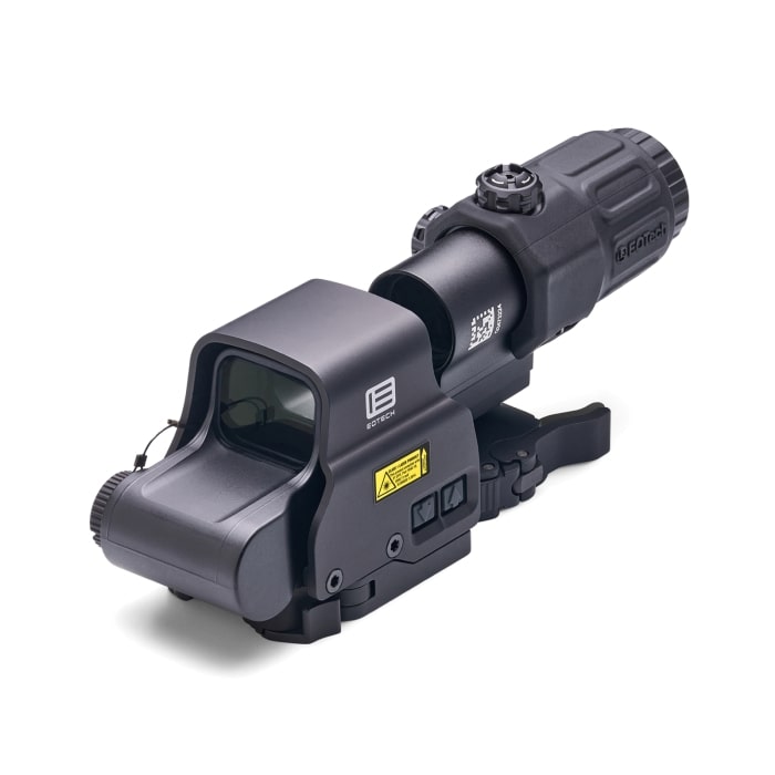 Regardless of the scenario, the Holographic Hybrid Sight II (HHS II), featuring an EXPS2-2 with a G33.STS magnifier, provides an amazing advantage when transitioning from close-quarters to long-range shooting. Instant transition is achieved through a quick Switch-To-Side (STS) mount that offers a simple, quick disengagement of the magnifier. Offering true 2 eyes open shooting, a transversely mounted lithium CR 123 battery and 7mm raised base offering iron sight access, the EXPS2 features easy to adjust side buttons and a single, quick release throw lever for easy attachment and removal. The G33 STS magnifier is shorter and lighter than previous models. The G33 offers tool free azimuth adjustment, a larger field-of-view and an adjustable diopter for improved, precise focusing. The HHS II combination is the perfect setup for hunting when your target is on the move. Auto shutdown at 8 hours.