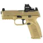 FN America, 509 MRD, Striker Fired, Semi-automatic, Polymer Frame Pistol, Mid-Size, 9MM, 4" Barrel, Matte Finish, Flat Dark Earth, Inlcudes Holosun 407C Red Dot Sight, Non-Manual Safety, Optic Height Sights, 10 Rounds, 2 Magazines