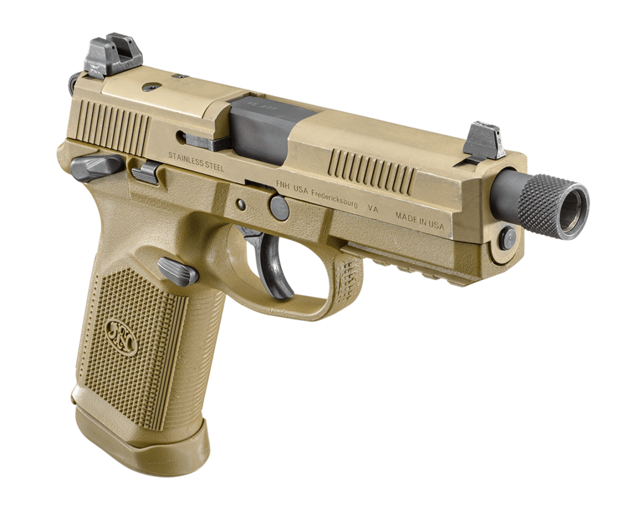 This FN FNX Tactical 45 ACP pistol features a 5” barrel for improved accuracy and recoil management. It has a 15+1 round capacity and an attractive Flat Dark Earth (FDE) finish. This powerful firearm is constructed with durable stainless steel components and boasts an ergonomic polymer frame for better control and handling.