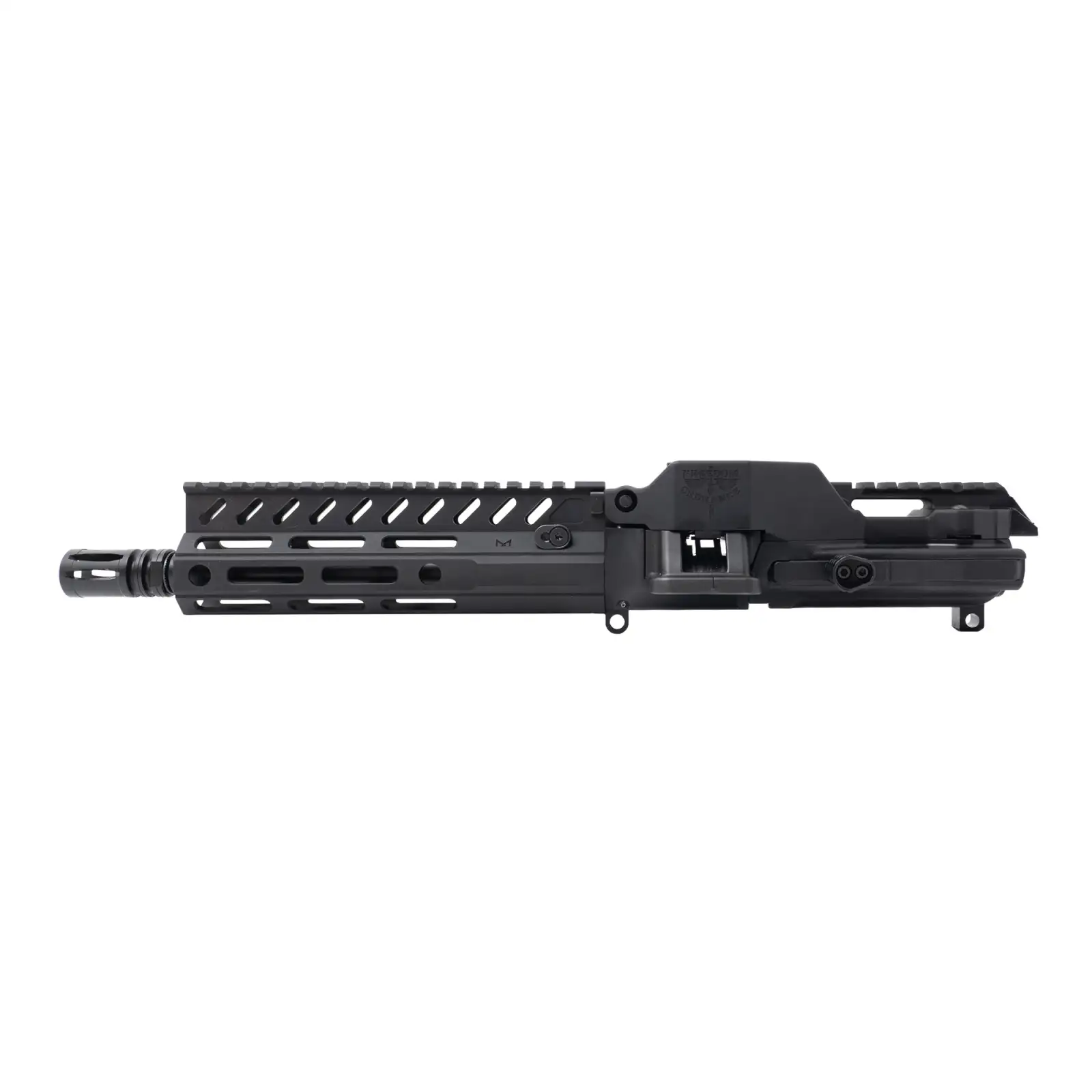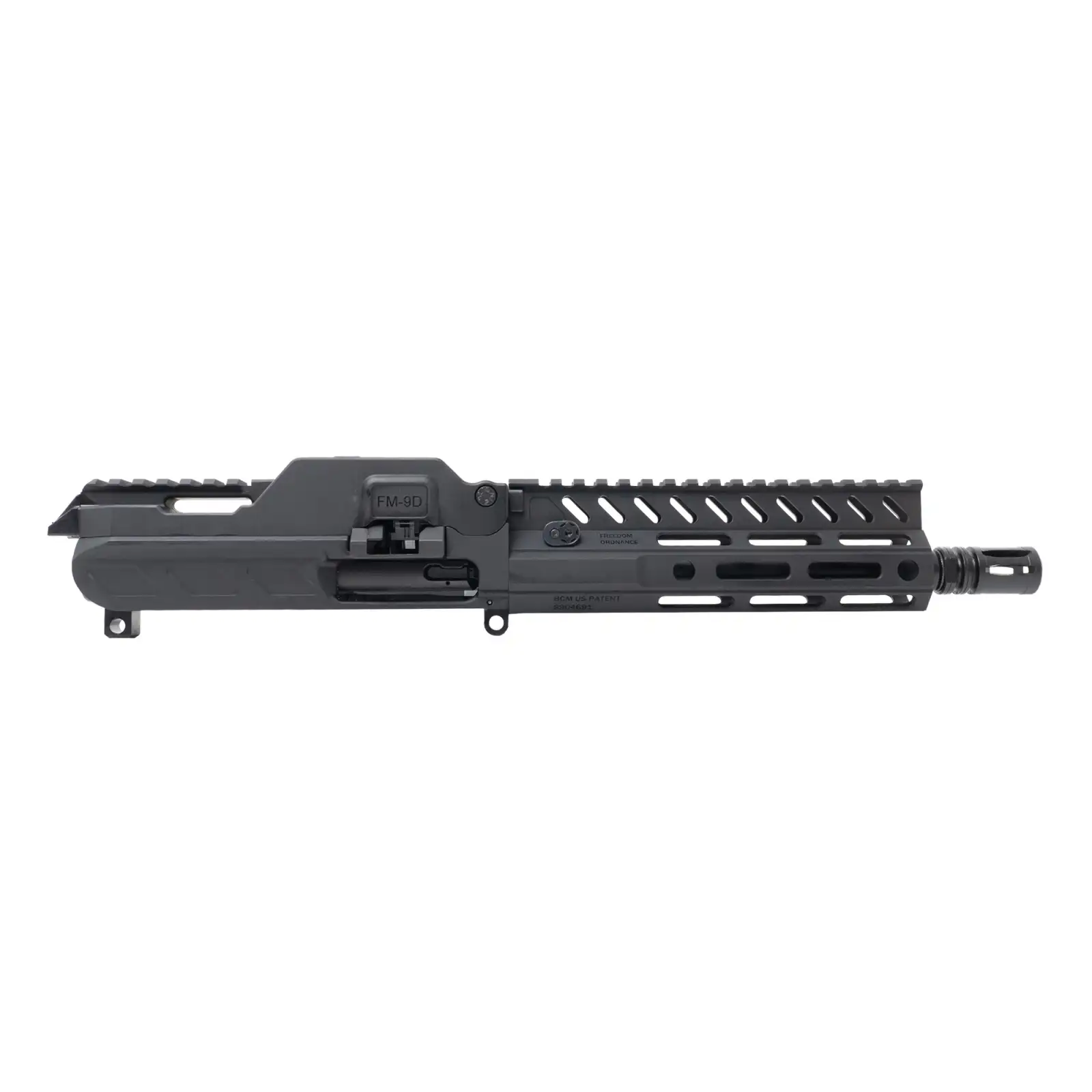 Freedom Ordnance Belt Fed Complete Upper Reciever, 9MM, 8" Barrel, Anodized Finish, Black, M-LOK Handguard, Fits Freedom Ordnance FM-9D, 1 Magazine, 33 Rounds, Includes 150 Links, 100 Round Bag & Soft Case FM9DUM-BLK