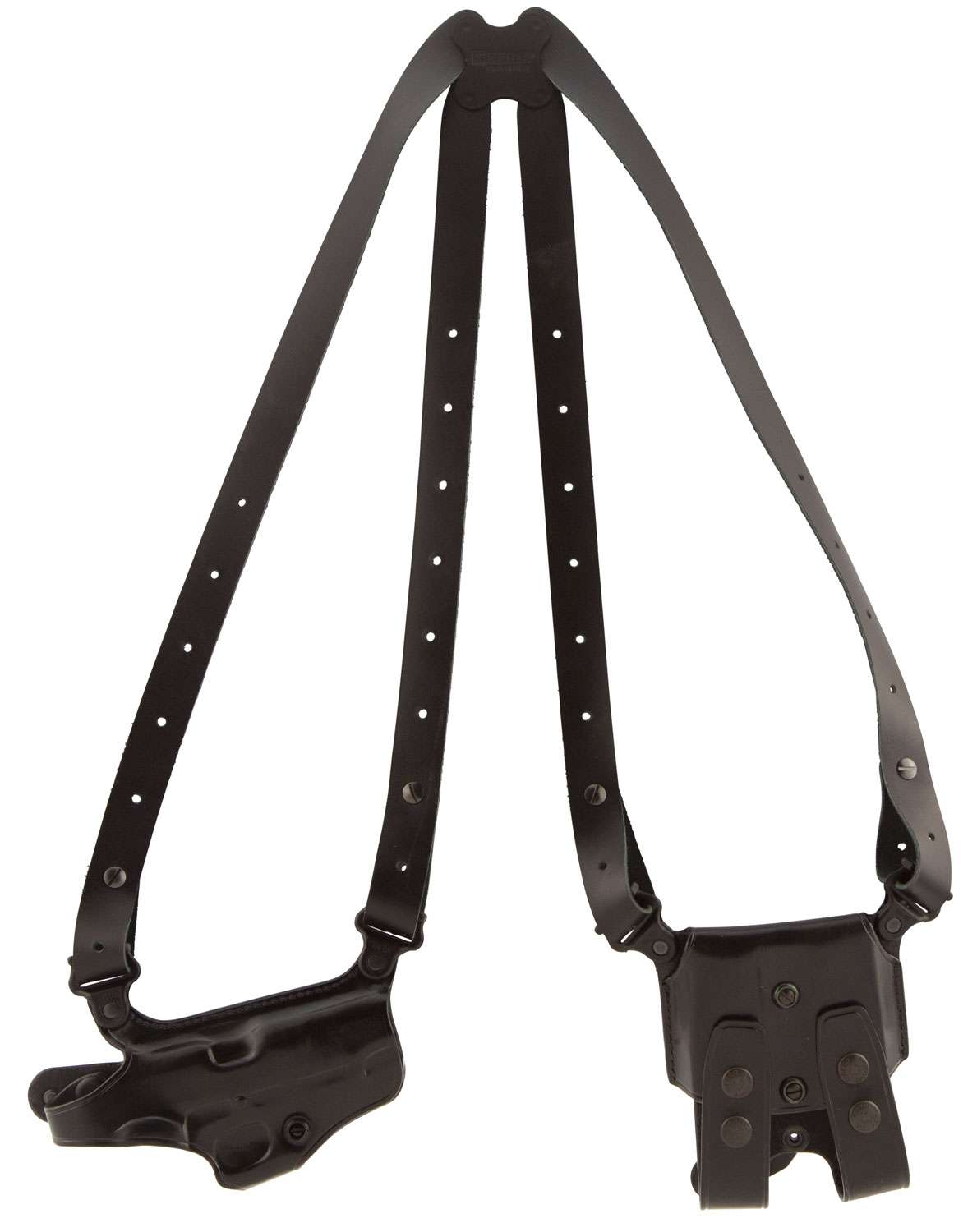 The Miami Classic Shoulder System is a favorite of professionals worldwide. A key component of this system is the spider harness which independently pivots at all four points and is connected by Galco's trademark clover-shaped Flexalon swivel back plate. This results in a perfect fit and lasting comfort for all sizes and shapes. The harness fits chests to 52". This system is constructed of premium steerhide and includes holster, harness with easily-concealable narrow straps, vertical double ammo carrier with secure flaps, and a set of system screws. This Miami Classic model has a black leather finish and is configured for right-handed carry. It is compatible with: Browning BDA .45; Sig Sauer P220, P220 Combat, P220 with rail, P220R Carry, P226, P226 MK25, P226 with rail, P228, P229, P229 with rail.