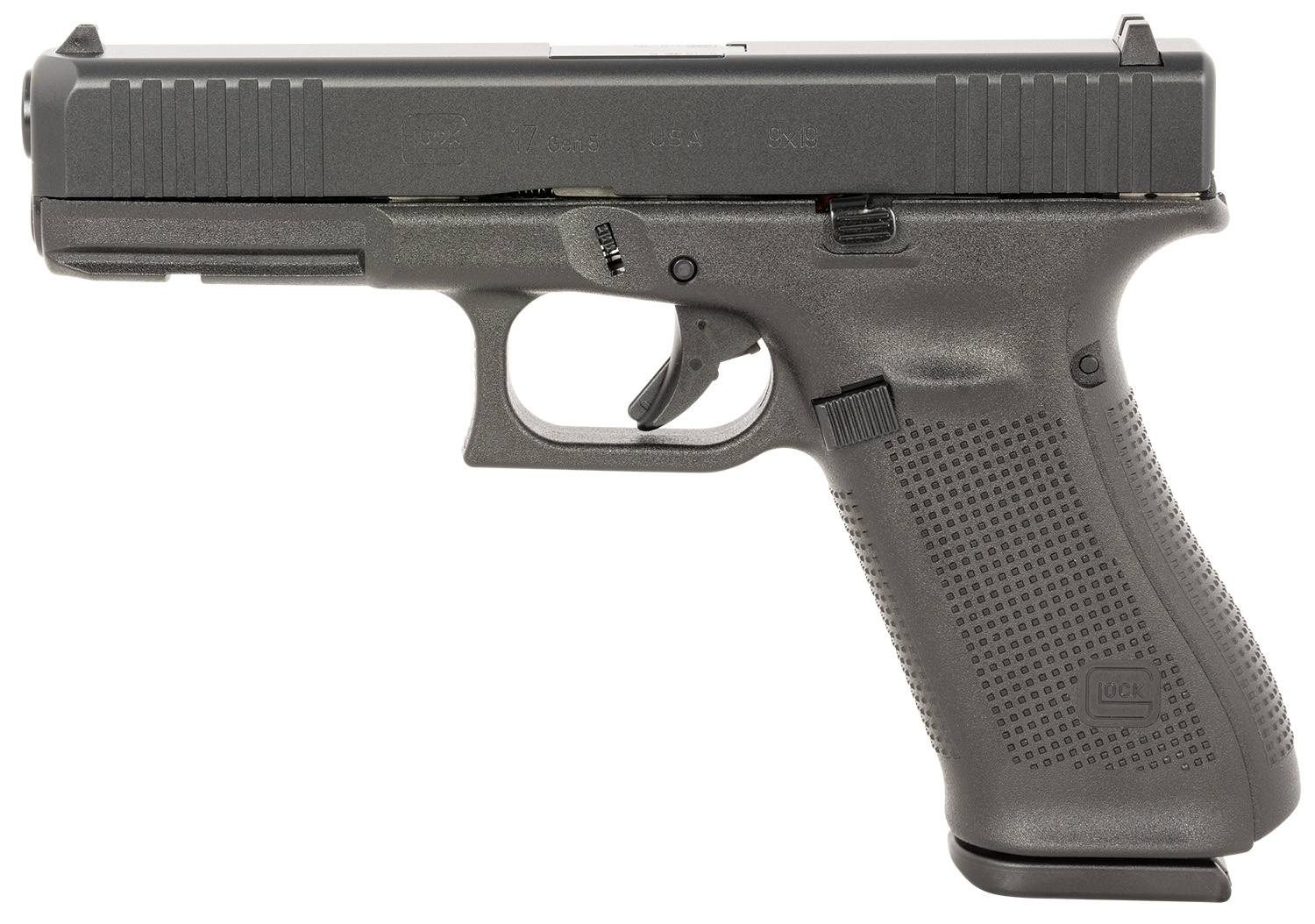 Glock UA175S201 G17 Gen5 Full Size 9mm Luger 10+1 4.49" Black GMB Barrel, Black nDLC Serrated Slide, Black Polymer Frame w/Accessory Rail, Black Textured w/Interchangeable Backstrap Grip, Ambidextrous USA Made