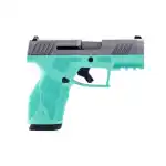 Taurus USA, GX2, Semi-automatic, Striker Fired, Compact, 9MM, 3.38" Barrel Length, Matte Finish, Silver and Cyan, Manual Safety, White Dot Front Sight with Drift Adjustable Rear Sight, 10 Rounds, 2 Magazines