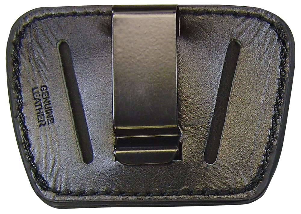 The Concealment Holster in Small to Medium will fit all small to medium frame automatic handguns such as .22, .25, .32, and .380 handguns, plus some smaller 9mm models. It is crafted from genuine high-grade leather, the slots will fit up to 1" belt, it has a removable clip for wearing inside or outside the waistband on the right of left. It is available in black or brown.
