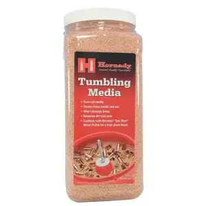 Clean up your cases with the Hornady One Shot Tumbler Media. This media is made of ground corn cob for use in a case tumbler. The abrasive media removes tarnish and other residue from cartridge cases. Use with One Shot Metal Polish for a shiny, like-new finish.