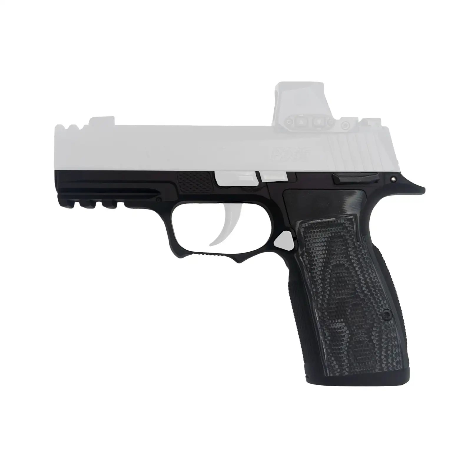 ICARUS PRECISION A.C.E. AXG, Grip Module, Fits Sig P365 X-Macro/XL, Manual Safety, Aluminum Construction, Anodized Finish, Black, Hogue Black G10 Grip Panels 365_AXG_MACRO_SFT_BLK_HGBL