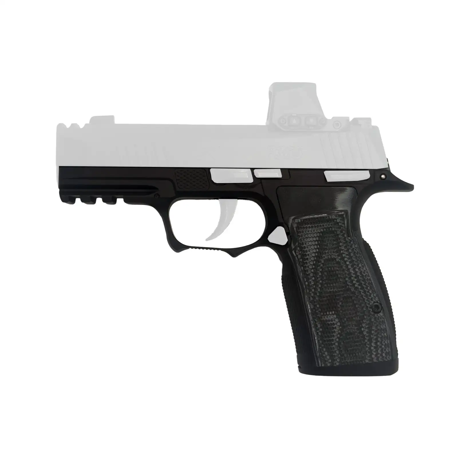 Icarus Precision A.C.E. SXG, Grip Module, Fits Sig P365 X-Macro/XL with Manual Safety, Steel Construction, Nitride Finish, Black, Hogue Black G10 Grip Panels 365_SXG_MACRO_SFT_BLK_HGBL