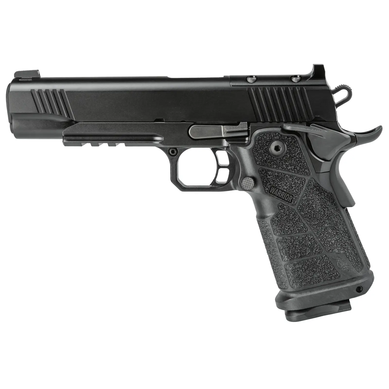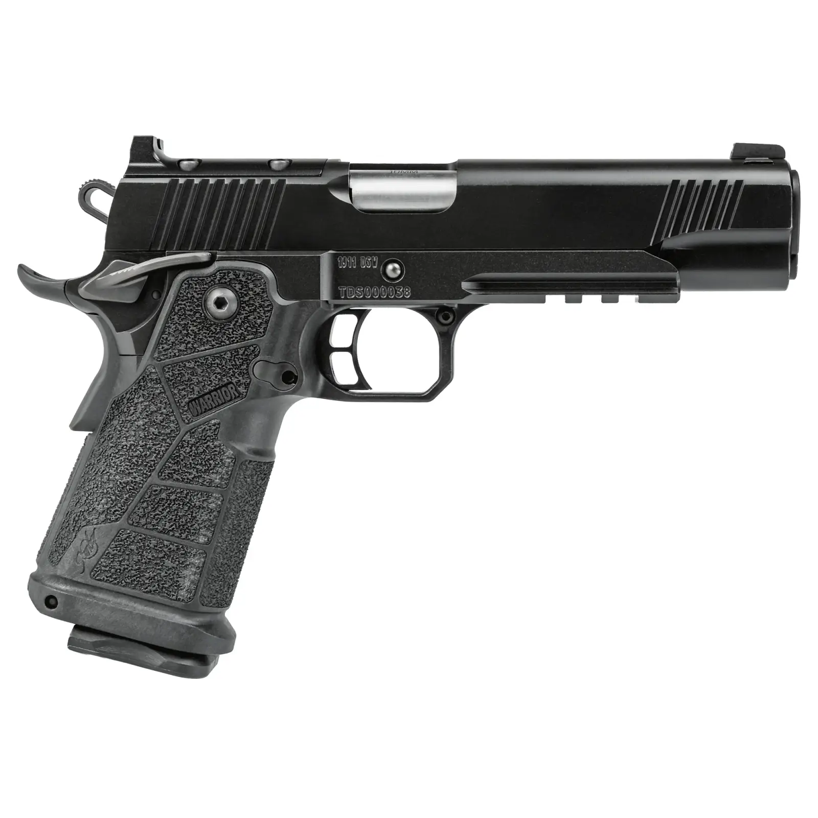 For more than 45 years, Kimber has set the standard for exceptional 1911 pistols-designed, built, and perfected in America. That legacy continues with the introduction of the 1911 DS Warrior. Engineered for uncompromising performance, the DS Warrior features a superior finish, optics-ready capability, and a lightweight carbon fiber-infused grip. Each 1911 DS Warrior is hand-fitted, a level of craftsmanship unmatched by any imported high-capacity 1911. Proudly Always American Made, the 1911 DS Warrior delivers unparalleled value and uncompromising performance.