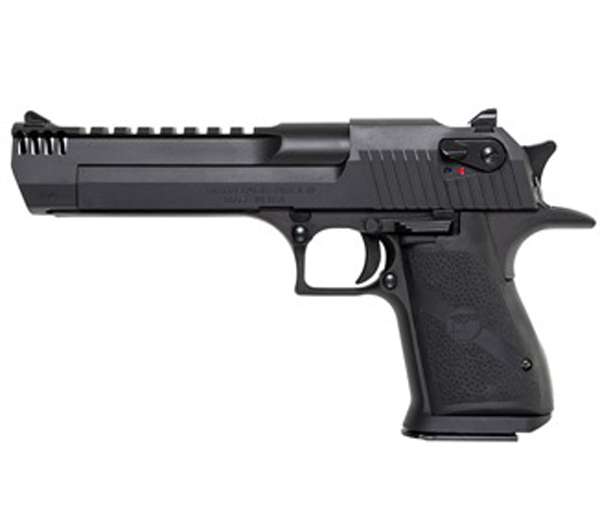 The Magnum Research Desert Eagle is constructed of high quality carbon steel and is chambered in .44 Magnum with a 8+1 capacity. It has a 6" carbon steel barrel, a full Weaver style rail on top, and an integral muzzle brake.