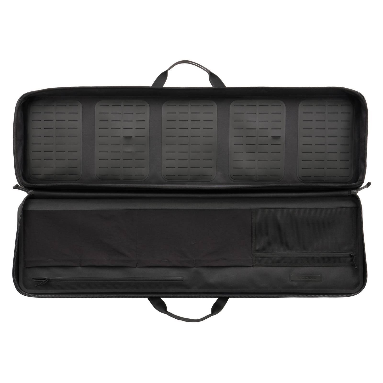 The case’s two external YKK Aquaguard zippers are extremely rugged and include easy-grip 550 cord pulls that are reinforced with heat shrink wrap. The case has a MOLLE-style base and includes five reconfigurable DAKA Gear Straps to secure a rifle, MOLLE-compatible pouches, or other gear. The interior of the lid features four stretchable mesh pockets to hold up to eight PMAG LR/SR GEN M3 sized magazines, a mesh organizational pocket for small items, and a zippered pocket for accessories and documents such as NFA paperwork, targets, manuals, and other important materials.