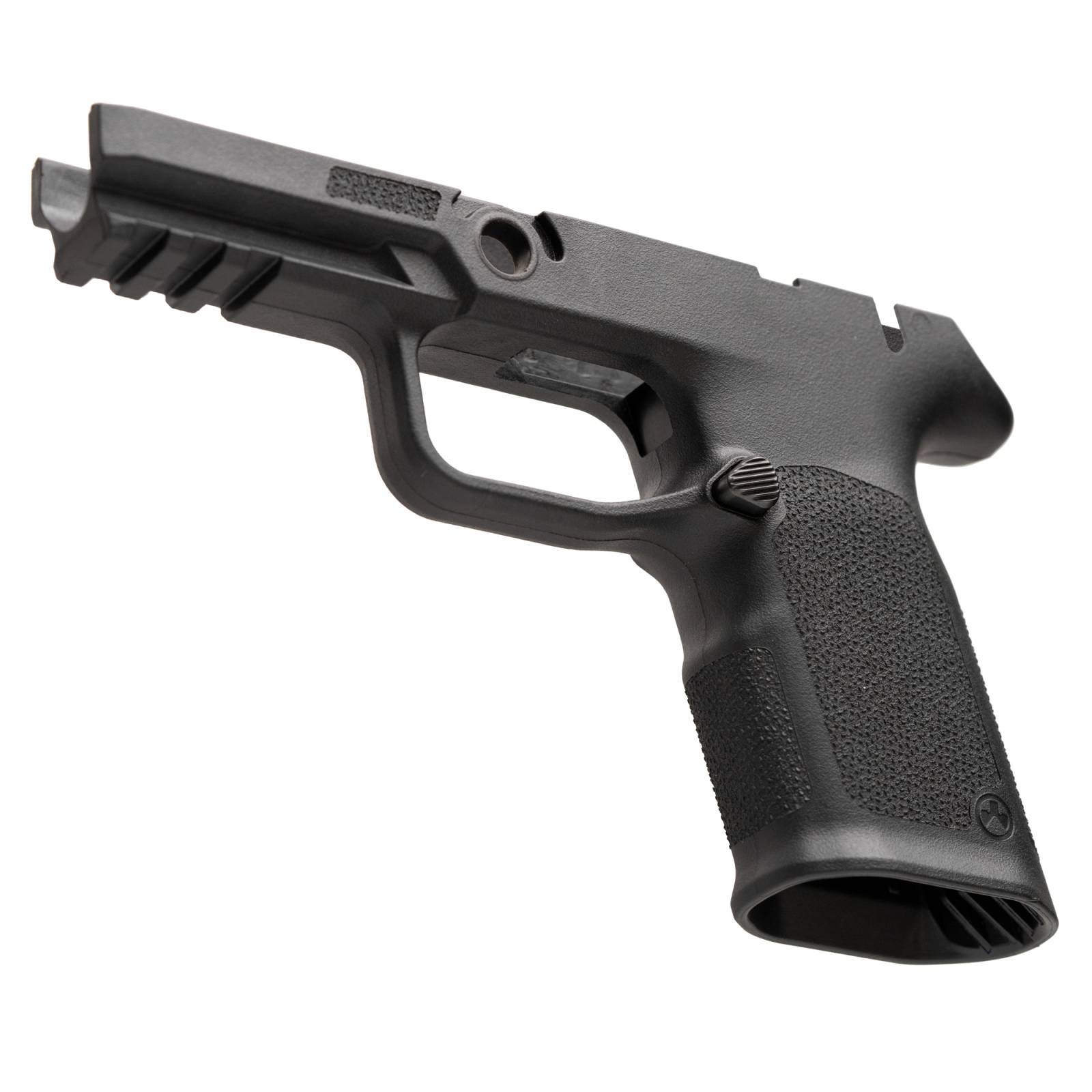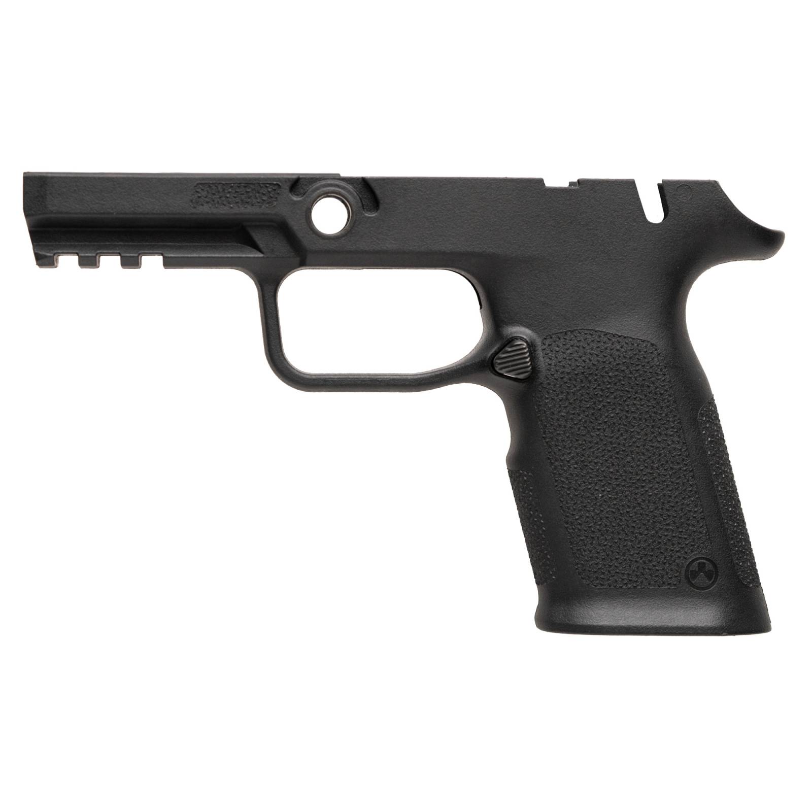 The Magpul EHG SG9 Full Size grip frame for the SIG Sauer P320 functions with OEM P320 trigger modules, OEM 17-round magazines and magazine base plates, and small components and accessories. The EHG SG9 features an integral carry-sized magazine well flare and includes a Picatinny rail for lights or lasers. As an added bonus, the frame also comes with the Magpul-designed Magazine Release installed, which is reversible for left-handed shooters. This steel magazine release is finished in QPQ to resist corrosion and wear, and the releases contoured surface features custom jimping to ensure positive engagement with the shooter's finger when changing magazines.