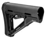 Made in the USA, the Magpul CTR (Compact/Type Restricted) Commercial-Spec Model is a drop-in replacement buttstock for AR15/M16 carbines using commercial-spec sized receiver extension tubes. Designed for light, fast action the streamlined A-frame profile avoids snagging and shields the release latch to prevent accidental activation. The Commercial-Spec Model includes an extended 0.55" thick rubber butt-pad to provide positive shoulder purchase and accommodates the longer, slanted back common to most commercial-spec tubes.