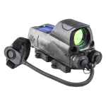 The MOR by Meprolight is a multi-purpose reflex sight used be the IDF as well as other Special Forces units around the world. The MOR features a unique combination of aiming systems: a holographic reticle, a visible laser (in either red or green), and an infrared laser for use with night vision goggles. The holographic reticle is illuminated with three independent systems: a fiber optic light collector for daytime use, a tritium lamp for use in dark environments, and an adjustable LED emitter for an extra bright reticle. This means that the MOR will continue to function in the unlikely event that one of the illumination sources fail or if the batteries are low or completely dead. The LED emitter and two lasers are powered by two independent and commonly available AA batteries, and can function even when one is out of power allowing greater runtime and providing an added level of security. The MOR's dual lasers can be activated by a PTL cable switch that can be positioned at various points on the host weapon for quick access, and will activate the laser (either visible or IR) for as long as the switch is held down. The user can select either the visible laser or IR laser via a multi-position switch on the body of the MOR. Another advanced feature of the MOR is single bore sighting mechanism. This allows the operator to zero one of the systems (reticle, visible laser, or IR laser), and the rest of the systems will automatically zero in at the same time.