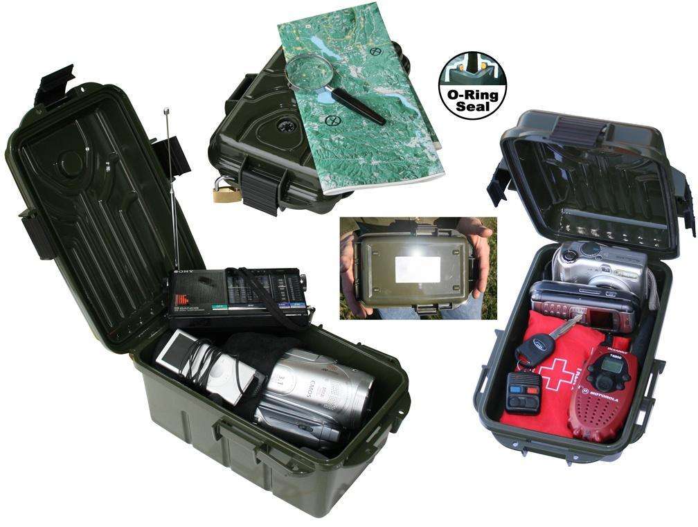 With its water-resistant O-Ring seal and tongue and groove design, the Survivor Dry Box from MTM is designed for extreme environments. It also features a compass built in the lid, a signaling mirror, and triple latches for the best possible seal. This rugged all-weather box is tall enough to hold any non-handled Case-Gard 50 ammo box. It has lock holes and floats. Inside dimensions are 8.2" x 5" x 4.4".
