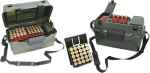 The Shotgun Hunter Case is ruggedly constructed, offering a strong, comfortable handle, easy open latch, and a nylon shoulder strap. Finished in MTM's wild camo coloring, two outside-access lid compartments, with room for shells on one side and a game call on the other, are teamed with molded-in shell holders, for cripple loads, to keep the shotgunner always ready for action. Inside the case are four 25-round shot shell trays plus a unique Hip Hanger belt clip. Slide a tray onto the Hip Hanger and attach to your belt or pocket. Shot shells are held at a comfortable 45-degree angle for quick retrieval - excellent for dove and duck hunting, skeet, trap and sporting clays. The shell holder eliminates the need for the shell bag at trap and skeet fields. Measuring 15.1" x 9.1" x 8.5", there is plenty of room for the rest of your shooting gear. Model comes in 20 and 12 gauge.
