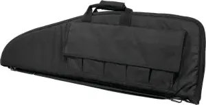 NcStar's 2907 series Rifle Case is constructed of tough PVC material and features high density foam inner padding for superior firearm protection. The outside of this 13" (OAH) case has an I.D. holder on one side and covered pockets on the other to store extra magazines and weapon accessories. The heavy duty hardware includes metal double zippers, metal D-rings, and carry handle straps with hook and loop flap. For a proper fit, NcStar recommends a case at least +2" longer than the firearm's overall length.