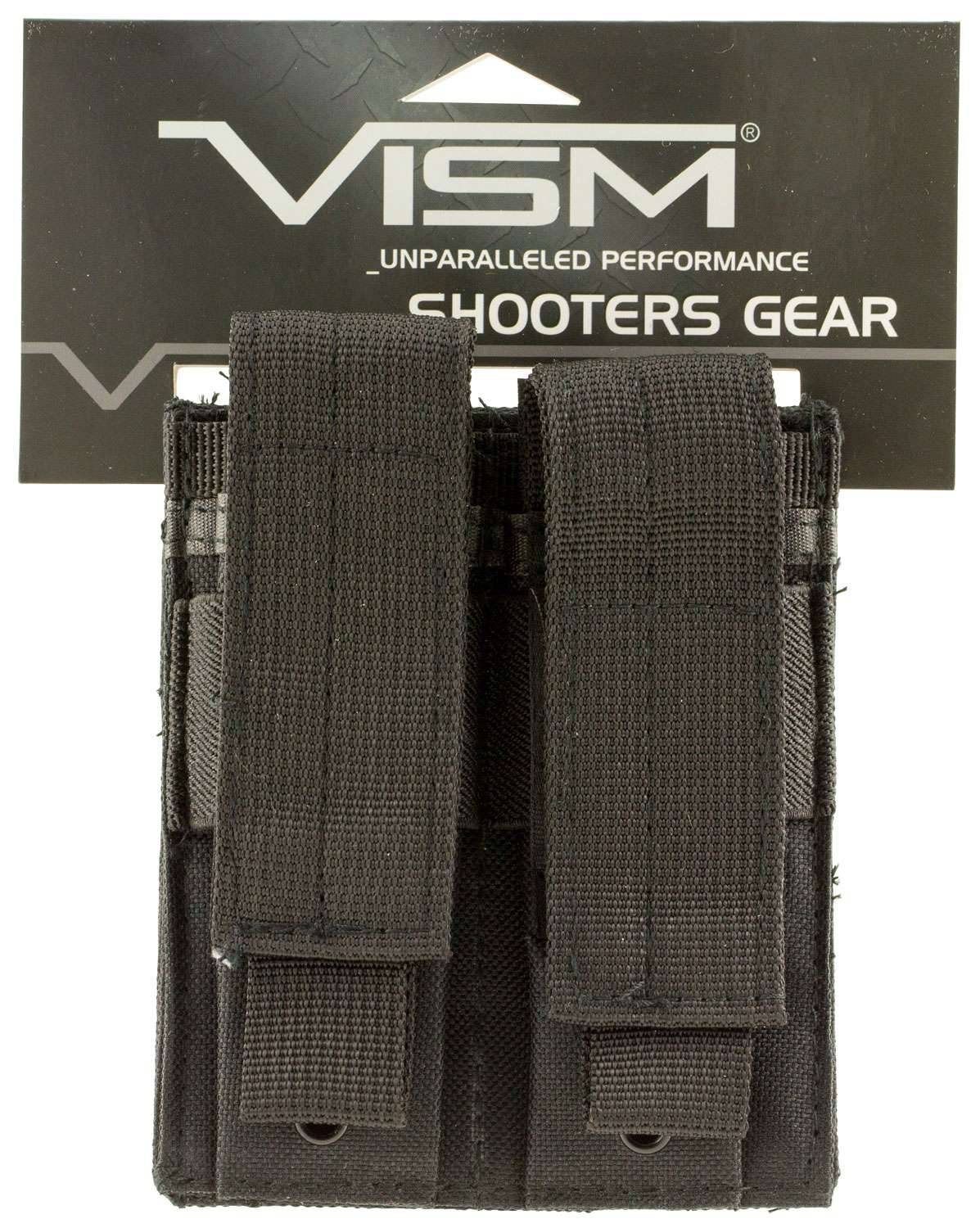 This mag pouch features two compartments to fit double stack pistol magazines, 2 snap buttons, and Molle webbing on the back panel for flexible mounting.
