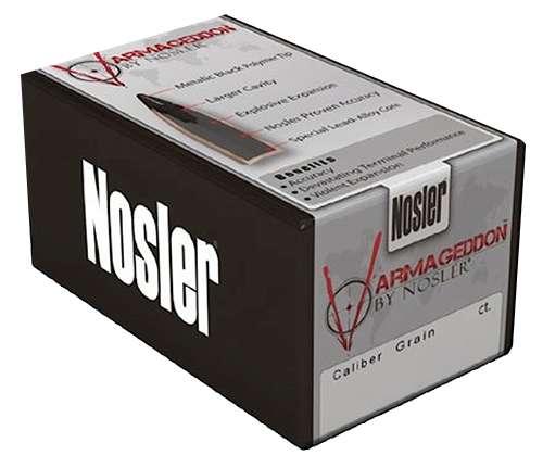 Nosler's Varmageddon line of loaded ammunition and component bullets features a highly accurate polymer tip or hollow point combined with a flat base design. Varmageddon products were created for the high-volume varmint shooter who requires the utmost precision. Loaded with Nosler brass, Varmageddon ammunition provides the highest levels of performance for any varmint hunter.