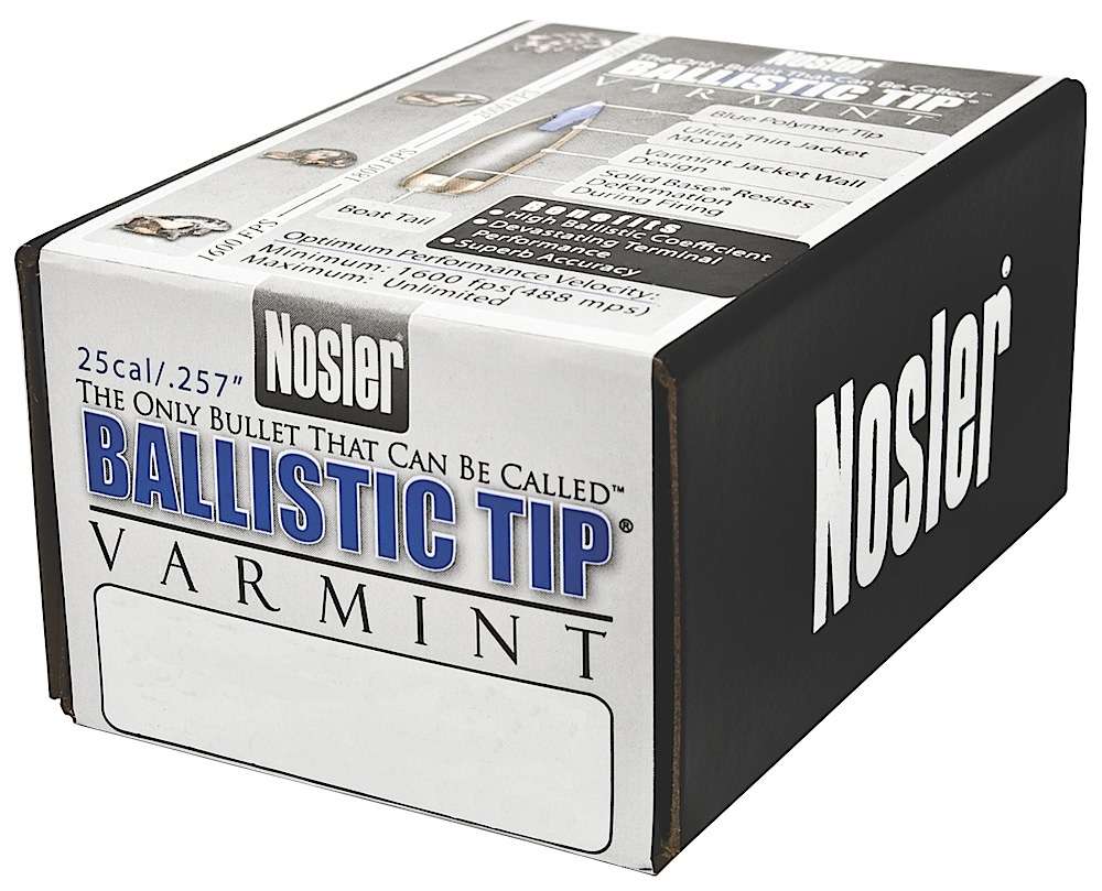 Nosler Ballistic Tip Varmint bullets thrive on ultra-high velocity loads, yet will go the distance with spectacular results all the way down to the lowest practical velocity levels. Fast or slow, near or far, no matter what rifle/cartridge combination you're shooting or what varmint you're shooting at, Nosler Ballistic Tip delivers match-grade accuracy with all the performance characteristics serious varmint hunters are looking for.