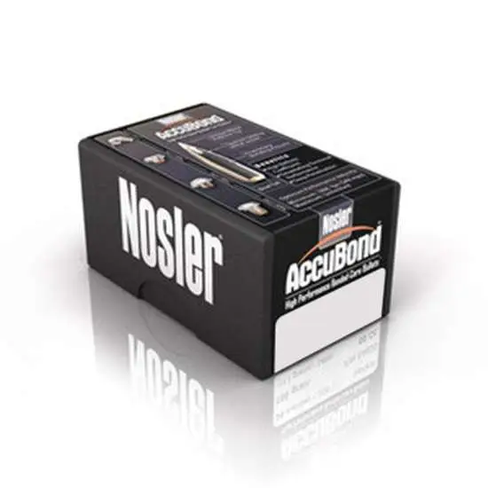 Through an exclusive bonding process that eliminates voids in the bullet core, AccuBond couples Nosler's proven copper-alloy jacket with its special lead-alloy core. The result is a bullet that flies true, penetrates deep and retains its weight, without causing extensive barrel fouling. The unique white polymer tip resists deforming and initiates expansion on impact. Nosler's Solid Base at the rear of the bullet acts as a platform for large diameter mushrooms.