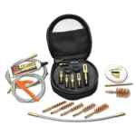 Otis' Tactical Cleaning System is versatile enough to handle every condition. It comes packaged in a 4" x 4" x 2 1/2" lightweight soft pack case with a belt loop for convenient carrying. Included is 8", 30" and 34" Memory-Flex Cables for Breech-to-Muzzle cleaning, six firearm-specific bronze bore brushes to remove copper deposits and other fouling, T-handle and obstruction removal tools for jammed cases and other blockages, Otis' Bio CLP which helps lubricate and protect the barrel, and a component holder that secures and protects brushes and components. This cleaning system contains brushes for .22, .270, .30, .38, .45 cal. rifles/pistols and 12/10 gauge shotguns and cleaning patches for all .17-.50 cal. rifles/pistols, .410 12/10 gauge shotguns and all in-line muzzleloaders.