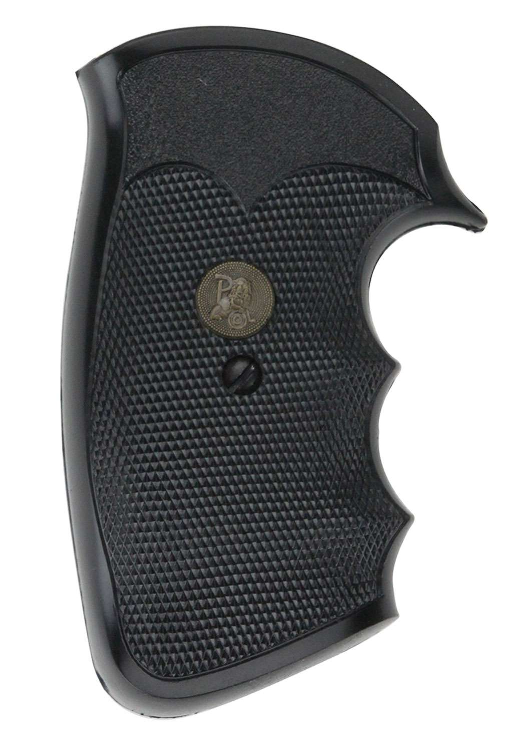 Pachmayr Gripper Grips for revolvers are made from a specially formulated rubber compound optimized for control and recoil absorption. The finger groove style is popular for combat shooting and hunting. A slight palm swell fills the hand but is not so large as to be uncomfortable. Gripper Grips are fully checkered for appearance as well as for control. Designed for correct hand position and point very well.