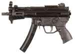 The 9KT model features an M-LOK compatible aluminum handguard with attached finger guard. The nitride treated 5.16", 3-lug barrel is threaded to 1/2" x 28. Both a push button and paddle magazine release are standard. The 2.55 precision-welded top rail enables use of compact optics or the traditional iron sights (included). The aluminum end cap features a removable QD sling mount with attachable M1913 rail, stock adapter. The gun ships in a heavy duty range case with: single point bungee sling, two 30-round magazines and rear sight adjustment tool.
