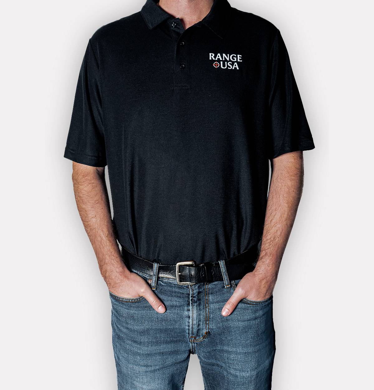 | Meta Title | Moisture-Wicking Embroidered Polo - Black-M | Range USA |