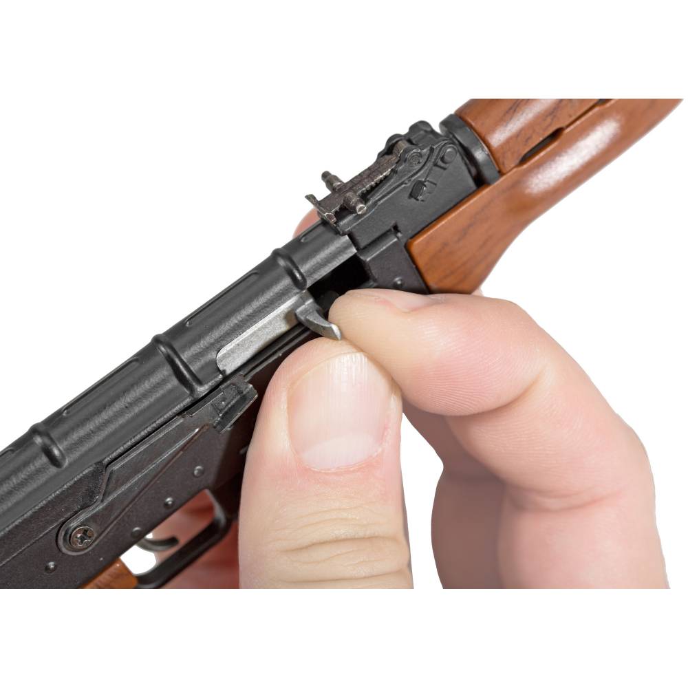 AK-47 Non-Firing Mini Replica, 1/3 Scale, Includes: Charge Handle That Pulls Back, Removable Dust Cover, Spring Loaded Trigger, Selectable Firing Modes, Fixed Stock, Adjustable Sights, Removable Mag with Three Brass Rounds, Removable Cleaning Rod, Magazine Release Lever, Black Finish RWWDAK47