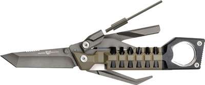 The Pistol Tool is ideal for mounting accessories, field disassembly, adjusting laser sights, and changing grips. The tool has a compact design that fits conveniently into most standard pistol mag pouches and each tool locks open. This pistol tool also has Titanium coated stainless steel components, 1911 government and officer bushing wrench, four Bondhus Protanium hex keys for laser sights, non-hardened stainless steel pick/scraper, 2.5" long bit driver, 3/32" pin punch with 8-32 threads, 3" tanto knife, 6 hex bits with ball detents, fine tooth metal file, and a tap hammer surface.