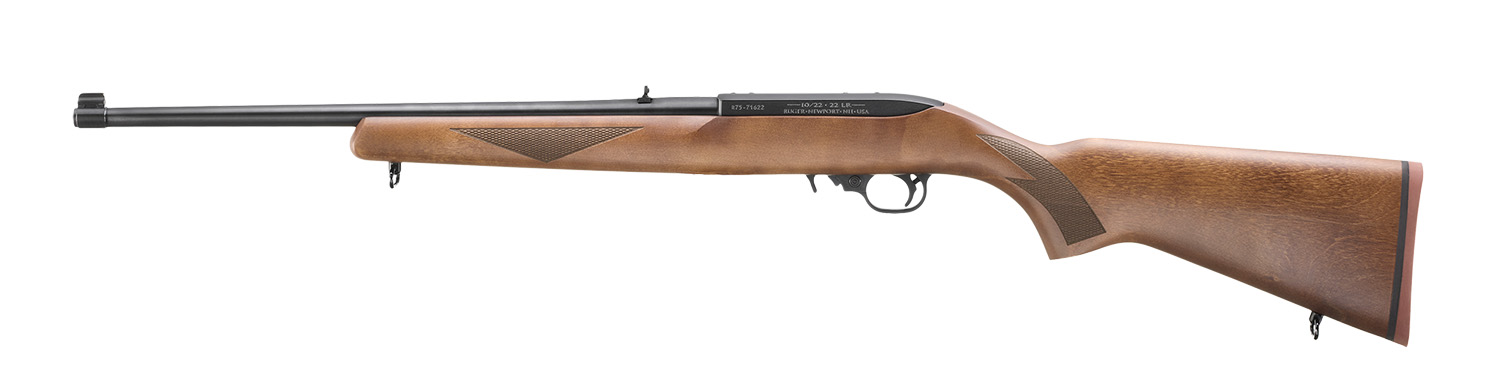 Features a celebration of Ruger's 75th Anniversary with a laser engraved logo on bolt, packaged in a throwback-styled, 75th Anniversary printed box and includes a 75th Anniversary decal. Detachable 10-round rotary magazine features a unique rotor to separate cartridges and provide reliable feeding. Cold hammer-forged barrel is locked into the receiver by a unique, two-screw, V-block system. Positive, push-button, cross-bolt manual safety. Combination scope base adapter for both Weaver-style and .22 tip-off scope mounts included. Heat-stabilized, glass-filled, polymer trigger housing assembly is made of high-tech material for improved manufacturing tolerances, impact and abrasion-resistance and an unmatched ability to withstand the elements.