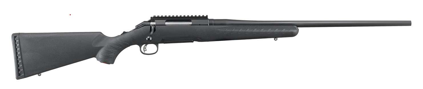 Ruger's American Rifle offers minute-of-angle accuracy that can make every hunt a success. The one-piece, three-lug bolt with 70 degree throw provides ample scope clearance and utilizes a full diameter bolt body and dual cocking cams for smooth, easy cycling. Its patent-pending Power Bedding, integral bedding block system positively locates the receiver and free-floats the barrel for outstanding accuracy. The ergonomic, lightweight synthetic stock with soft rubber buttpad is designed for quick, easy handling and blends a classic look with modern forend contouring and grip serrations. The American Rifle also has a Ruger Marksman adjustable trigger, cold hammer-forged barrel, and a tang safety. This Standard 30-06 Springfield model has a 22" matte black barrel, black synthetic stock, rotary magazine and sling swivel studs.