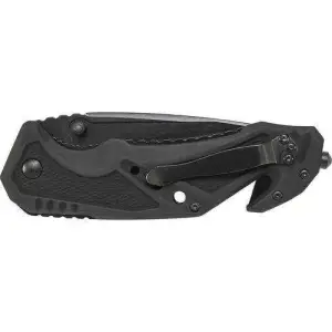 This knife features a black 7Cr17MoV high carbon stainless steel tanto blade with ambidextrous thumb knobs and thumb rest jimping.