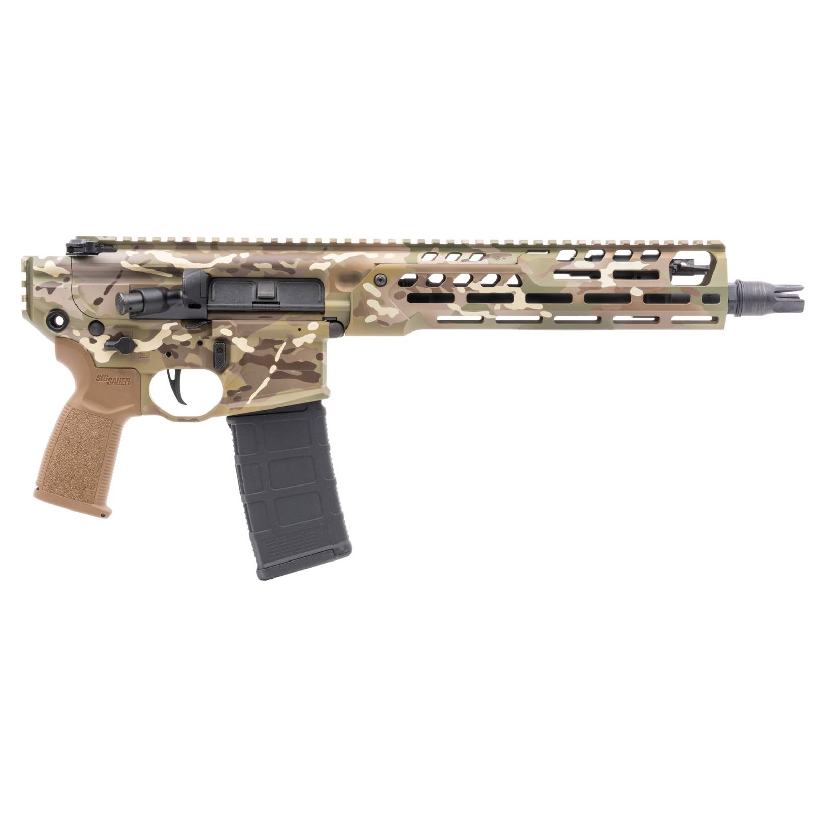 Sig Sauer MCX SPEAR-LT, Semi-automatic Pistol, 5.56NATO, 11.5" Barrel, Cerakote Finish, Multicam, Flat Blade Match Trigger, M-LOK Handguard, Ambidextrous Controls, 30 Rounds, 2 Magazines, Includes Savior Equipment Coyote Covert Rifle Case PMCX-556N-11B-CW-V1-LT