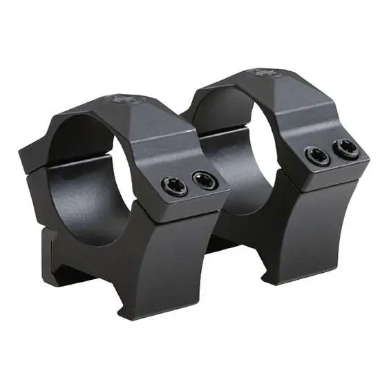 Proprietary steel alloy Alpha Hunting Rings are machined with an exactness that is both strong yet ductile, allowing for an exact fit around a riflescope without damaging scope (under proper installation). These Weaver-style rings are epoxy powder coated to prevent oxidation and resist gun oils, cleaning solutions, and outdoor exposure.