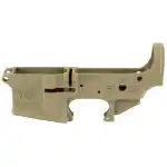SOLGW M4 Milspec Stripped Lower. Collaboration with Rogue American Apparel featuring the Scalper logo and selector markings. Forged from 7075-T6 Aluminum. Flat Dark Earth Cerakote Finish. M16 pocket cutout. Fully machined to remove flash markings from forging.