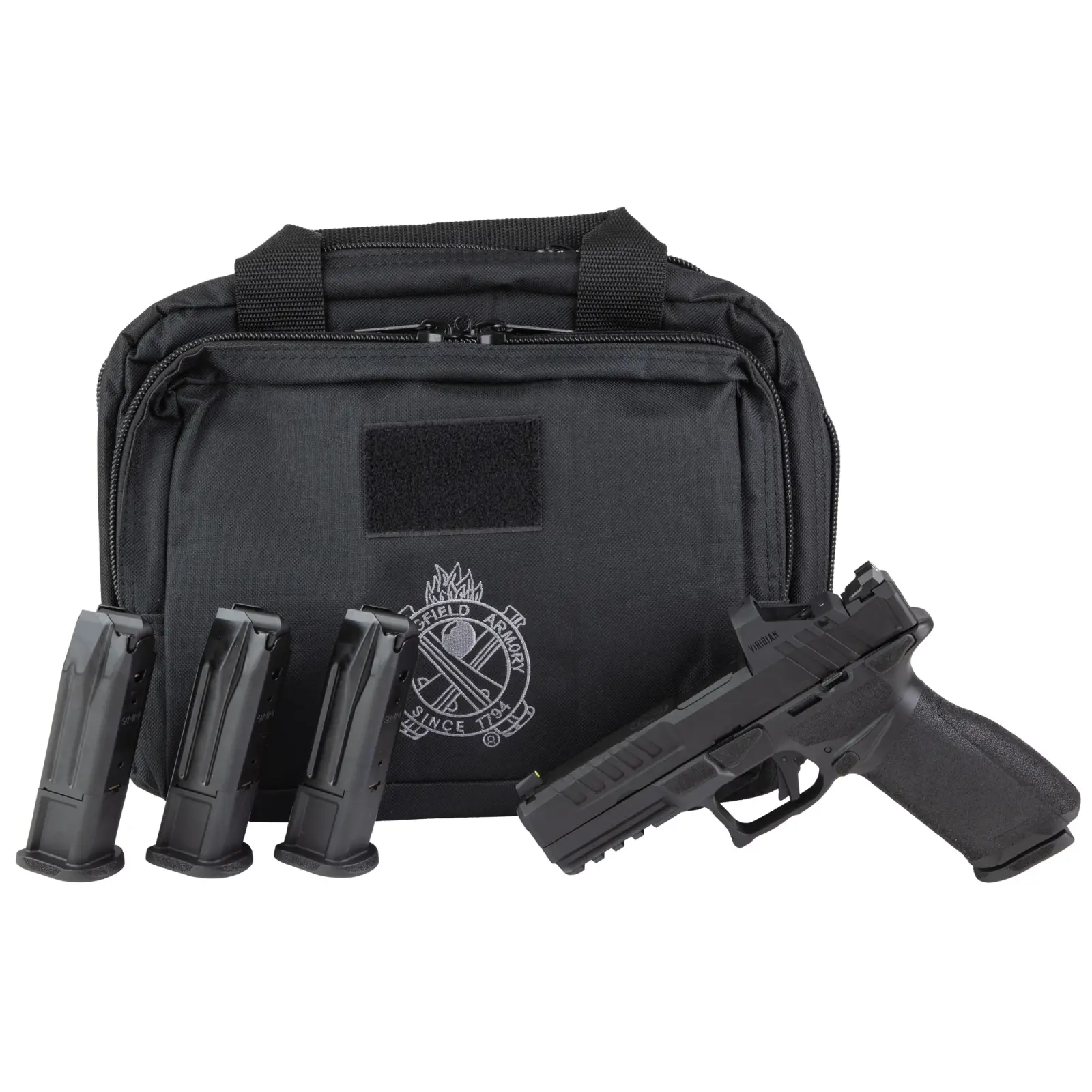 Springfield, Echelon Gear Up, Striker Fired, Semi-automatic, Polymer Frame Pistol, Full Size, 9MM, 4.5" Barrel, Melonite Finish, Black, Optics Ready Slide, Front Tritium Night Sight, Tactical Rack U-Dot Rear, Manual Safety, 10 Rounds, 5 Magazines, Includes Viridian RFX11 Green Dot Sight and Range Bag