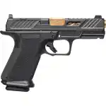 Shadow Systems, MR920 Elite, Striker Fired, Semi-automatic, Polymer Frame Pistol, Compact, Massachusetts Compliant, 9MM, 4" Bronze Spiral and Fluted Barrel, Nitride Finish Elite Slide, Black, Optics Ready, Flat Faced Trigger, Trigger Safety, Tritium Front Night Sight, 10 Rounds, 2 Magazines
